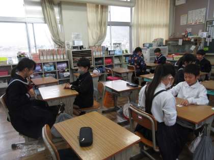 百人一首 公開日 2024/01/15 更新日 2024/01/15 4年生 国語で百人一首を学習しています。二人組で行う「かるた取り」では、先生の読み上げる上の句が終わらないうちに「はい!」という元気な声でカルタを取っている子がいました。