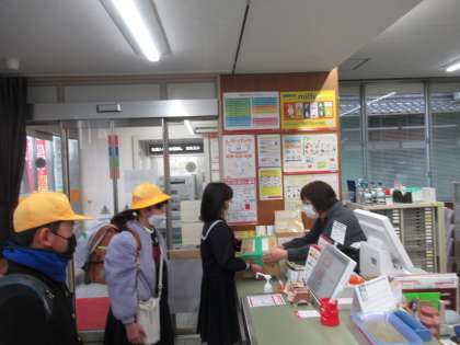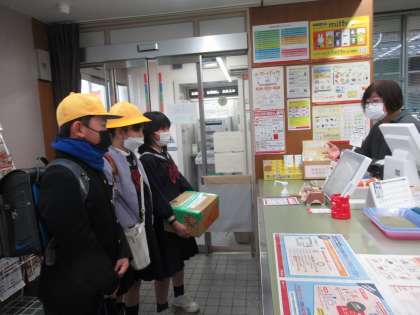 6年生の代表の子どもたちが、全校生やそのお家の方、地域の方にご協力いただいた募金(151,004円)を、『石川県令和6年能登半島地震災害義援金』として、郵便局から納入しました。子どもたちの呼びかけに対して、たくさんの温かいご協力をいただき、どうもありがとうございました。