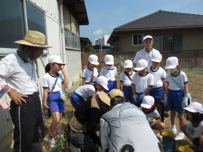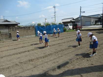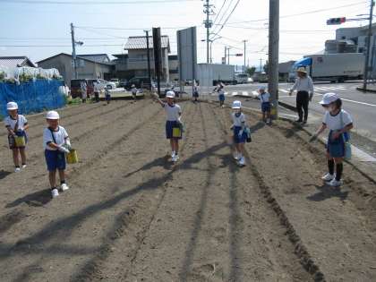 3年生の子どもたちが、宮池地域環境を守る会の方と一緒に、学校近くの田んぼに、コスモスの種をまきました。細くて軽い種を田んぼに上手にまくことができるように、会の方々が、種を田んぼの土と混ぜ合わせてくれました。子どもたちは、説明をよく聞いて、畝に種がまんべんなく散らばるように、丁寧にまきました。「土が乾いてきたころに、水をやるといいですよ。」とアドバイスをいただきました。これからみんなで協力しながらお世話をしていきたいです。