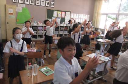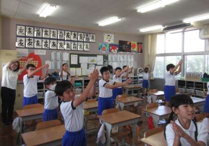 今朝の体力つくりの時間は、各教室で、香川県教育委員会が制作している『生活習慣☆リズム感』のダンス映像を見ながら、ダンスを踊りました。歌は、香川県出身のシンガーソングライターmimikaさんに、ダンス振付は、関西を中心に活動されている振付師ミスターさんにつくっていただいたそうです。子どもたちは、映像を見ながら、笑顔でダンスに取り組んでいました。子どもたちが、歌とダンスを通して、早寝、早起き、朝ご飯を心がけられるよう、望ましい生活習慣づくりに取り組んでいきたいと思います。