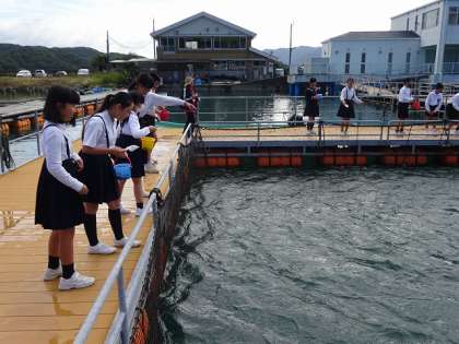 マーレリッコでは、ハマチのエサやりやタイ釣りの体験をしたり、養殖の歴史について話を聞きました。