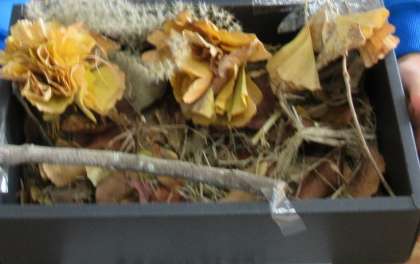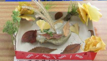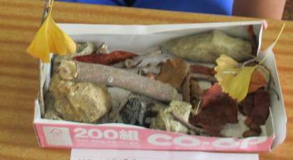 3年生が、自然のものを利用した工作作品を作りました。
