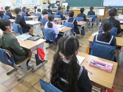 姿勢タイム 公開日 2021/01/13 更新日 2021/01/13 学校全体 1月13日(水) 今年初めての、水曜日、朝の姿勢タイムでした。写真は、1、2年生です。短い時間ですが、整った姿勢から一日が始まるのもいいなあと感じさせてくれる、姿勢の良さです。