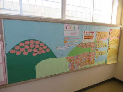 なかよし旬間 公開日 2021/02/03 更新日 2021/02/03 学校全体 比地大小学校は、今、なかよし旬間中(10日まで)です。階段のおどり場の掲示コーナーには、よさやがんばりを認め合った「花咲山カード」がどんどん増えていっているところです。