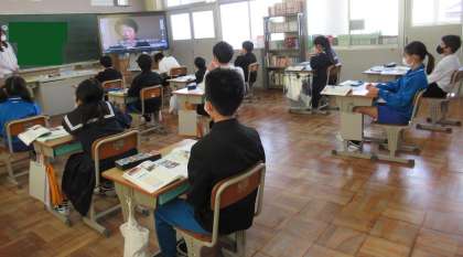 6年生では 公開日 2021/04/16 更新日 2021/04/16 学校全体 4月16日(金) 社会の時間、6年生は、日本国憲法の平和主義について学習していました。写真は、戦争体験について語る映像をみているところです。