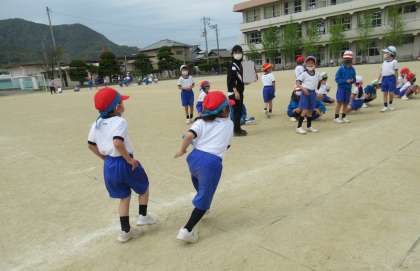 リレー練習(1、2年生) 公開日 2021/04/16 更新日 2021/04/16 学校全体 4月16日(金) 運動会に向けて、1、2年生が、色別リレーの練習をしました。この前は、歩いてリレーの練習をしたので、走るのは初めてでした。