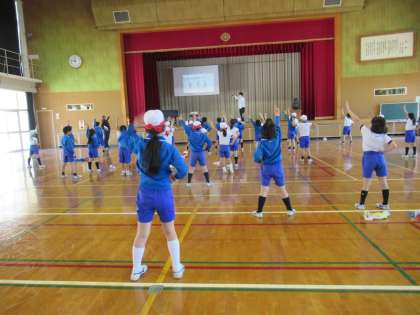 ダンス練習(3、4年生) 公開日 2021/04/20 更新日 2021/04/20 学校全体 4月20日(火) 3、4年生が、運動会のダンスの練習をしていました。映像を見ながら、同じ動きに近づくようがんばっています。