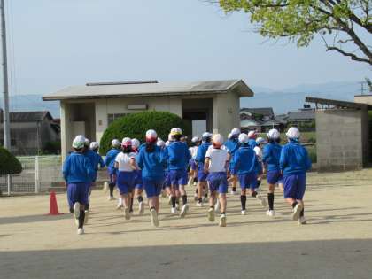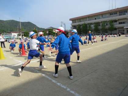 体力つくりの時間に、5、6年生のリレーを見学しました。入場から退場まで、まだそんなに練習していないのに、さすがの姿を見せてくれました。そんな5、6年生に、1から4年生は、拍手を贈り続けていました。気持ちがこもった、黙って拍手での応援でした。