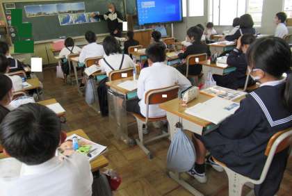 5年生は、理科の時間です。写真をもとに、天気について考えています。