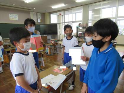 国語の活動で、同じ委員会の6年生にインタビューをしました。「よく伝わる話し方は?」や「どんな呼びかけをしたら?」など、委員会活動のこつなどを教えてもらいました。