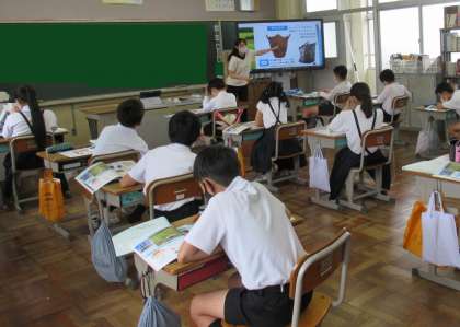 3時間目(6年生) 公開日 2021/06/04 更新日 2021/06/04 学校全体 6月4日(金) 6年生は社会科です。縄文時代について学んでいました。写真は、縄文土器について映像を見ているところです。