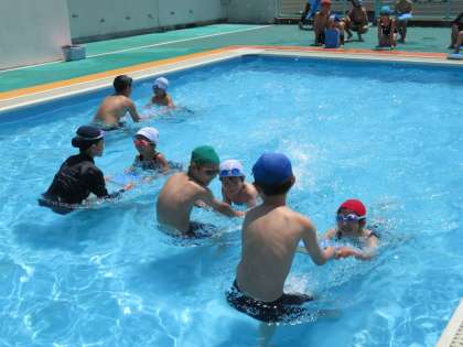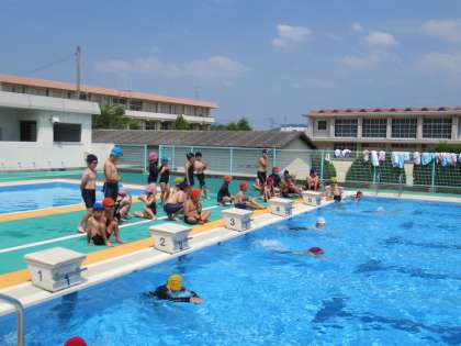 プール開き第2段として、ペア学年でプールに入りました。1、6年生は、6年生の泳ぎを見たり、6年生にビート版を引っ張ってもらったりしました。3、4年生は、久しぶりのプールでいろいろ泳いでみました。