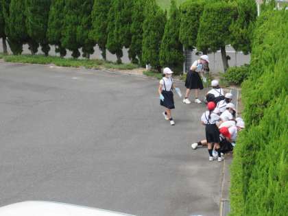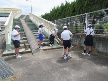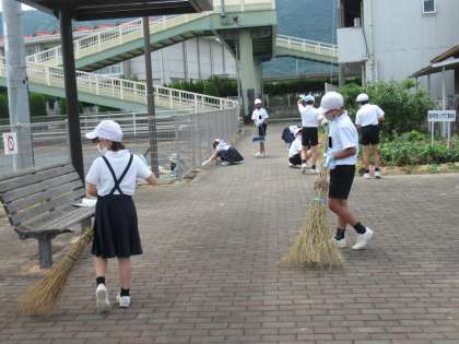 比地大小学校では、隔週の金曜日に、ボランティア清掃ということで、校内や歩道橋、比地大駅前、駅のトイレなどの清掃活動を行っています。今年度初めてのボランティア清掃が今日ありました。
