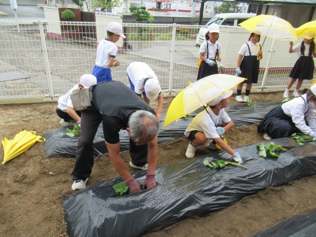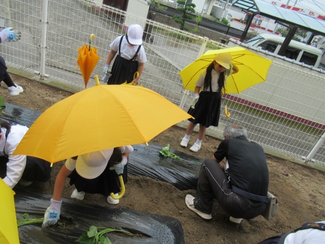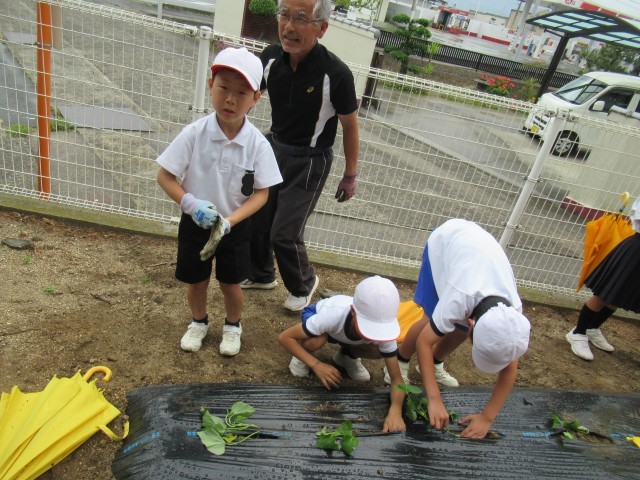 先生の説明をよく聞いて、一生懸命植える様子がとても微笑ましかったです。