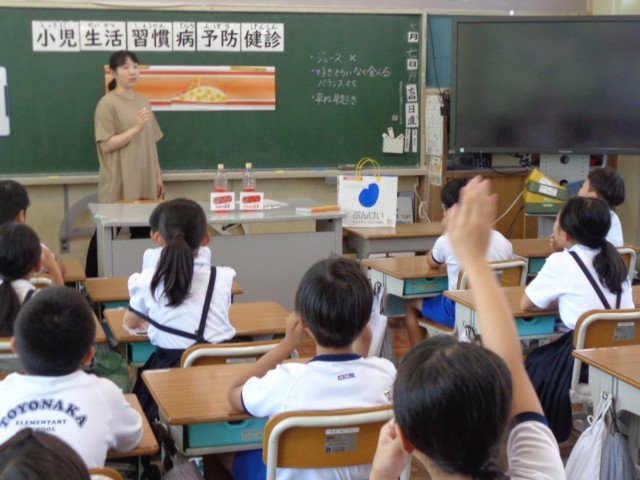 今日は、養護の先生から「小児生活習慣病予防健診」についてお話がありました。