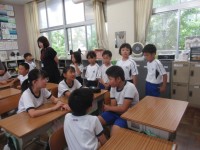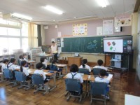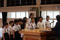 朝の時間に4年生がグループごとに朝のスピーチを始めようとしていました。そこに1...