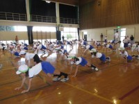 木曜日の朝は、体力つくりの時間です。久しぶりに全校生が集まって、「くま歩き」や「...