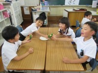 学活の時間に、栄養教諭の浪越先生をお迎えして、「野菜パワー!(野菜のはたらき)...