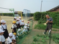 5時間目の生活科の時間、トウモロコシとエダマメの苗を植えました。野菜づくり名人...