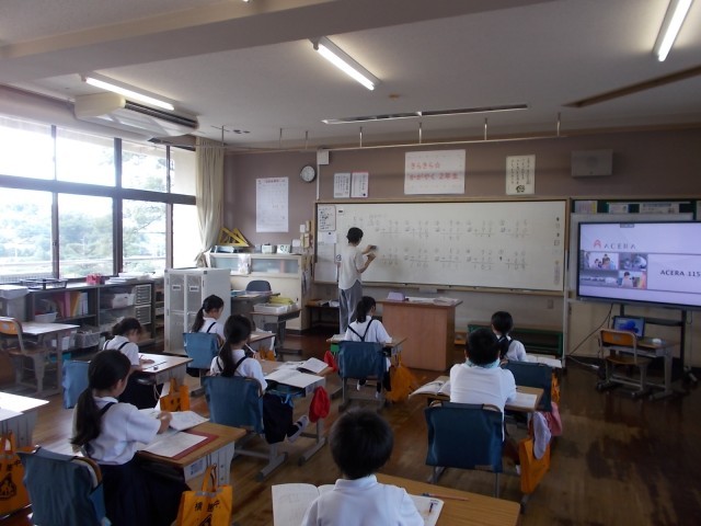 今日は、2年生の算数科の授業を紹介します。学習しているのは「2けたと2けたの足し算」です。足すと100をこえる計算になります。学年が上がるにつれて、数の世界がぐんと広がります。縦書きの筆算を使っての計算も正確にできるようになってきました。子どもたちは、友達と答えを見せ合いながら、一生懸命に学んでいます。また、みんなノートも丁寧に書けていました。