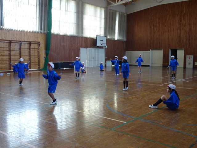 今日は中学年が校内なわとび大会を行いました。はじめは種目跳びです。あやとびや二重とび等、自分で選んだ種目に2分間挑戦し、最高記録を目指しました。縄に引っかかっても諦めずに跳び続ける姿が立派でした。次は時間跳びです。2分間を目標に一定のリズムで跳び続け、最後まで跳びきった子も多くいました。最後は2チームに分かれての長縄跳びです。声を掛け合い、チームで心を一つにして挑戦し、どちらのチームもこれまでの最高記録を更新することができました。記録だけでなく、挑戦する姿勢や友達を応援する姿がたくさん見られた素晴らしい大会となりました。