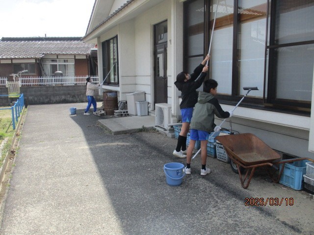 今日の5時間目に日頃の感謝の気持ちを込めて、公民館の窓や広場の掃除をしました。窓は道具を使ってきれいにし、落ち葉は大きなビニール袋3つ分になる量を集めました。なかなか感謝を伝えることができないので、今回感謝の気持ちを表現することができてよかったです。