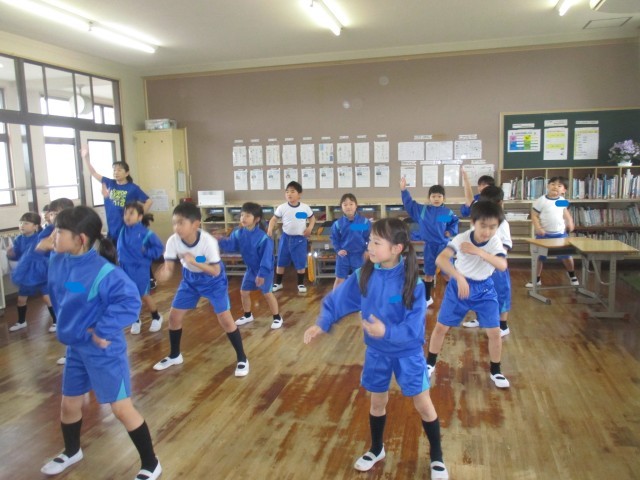 1・2年生でソーランの練習をしたよ。