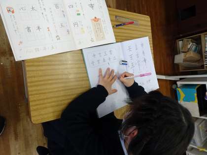 文字の形をいしきして 公開日 2024/01/10 更新日 2024/01/10 学校全体 1月10日(水) 2年生の書写の時間です。横画の長さに注目して、どのような文字の形になるとよいか考えていました。 どの横画の長さがいちばん長くなると、文字の形が美しく見えるのか。 実際に文字を書く場面では、机の上を整頓し、背筋を伸ばして、一生懸命書いていました。 おうちでも宿題をしている様子などを覗いてみてくださいね。