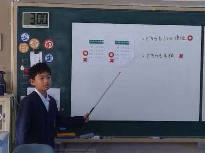 6年生の算数の時間に、校内研究授業を行いました。学習内容は「すごろくのあがり順の予想を、条件に当てはめながら確かめる問題」です。