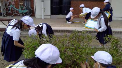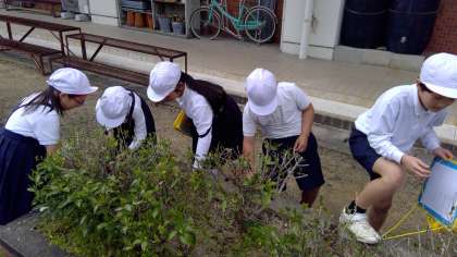 今日のみなかみ学習では、南庭にあるお茶っ葉を観察しました。葉をしっかりと見て、気付いたことを友だちと伝えあっていました。これからのお茶の学習が楽しみですね。