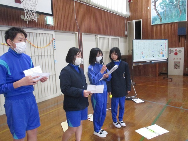 5時間目に「6年生を送る会」が行われました。5年生は体調を崩している子もおり、残念ながら全員参加とはなりませんでしたが、いない子の分までみんなで協力して働くことができました。朝の会場準備から始まり、会の運営、最後の片づけまで、少ない人数でよく頑張ったと思います。1年で本当にたくましくなったなあと感じました。
