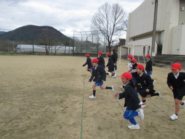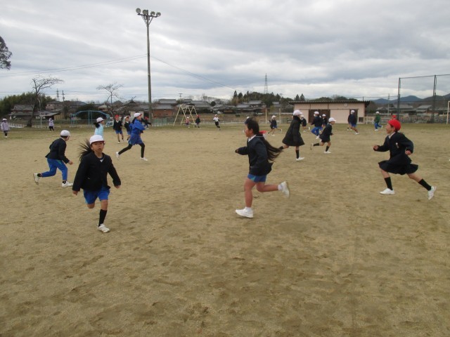 体育・飼育委員会主催で昼休みに全校遊びを行いました。各学年で2人ずつ鬼を決めて増え鬼をしました。あっという間に鬼だらけになってしまいましたが、3回戦することができました。外はまだまだ寒かったのですが、子どもたちの楽しそうな笑顔と歓声が運動場いっぱいに広がって楽しい時間となりました。もうすぐ卒業を控えた6年生とも一緒に遊ぶことができ、また1つ楽しい思い出が増えたことと思います。計画・運営をしてくれた体育・飼育委員会のみなさん、ありがとう!!