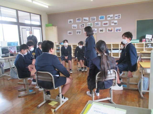1時間目は、最後の卒業式練習でした。明日、頑張って練習した姿、成長した姿をご覧ください。2、3時間目は、全員で学校の裏門のところにある溝掃除をしました。みんな一生懸命、掃除をしました。4、5時間目は、11人で過ごす最後のお楽しみ会です。みんなで楽しみ、いい思い出になったのではないでしょうか。