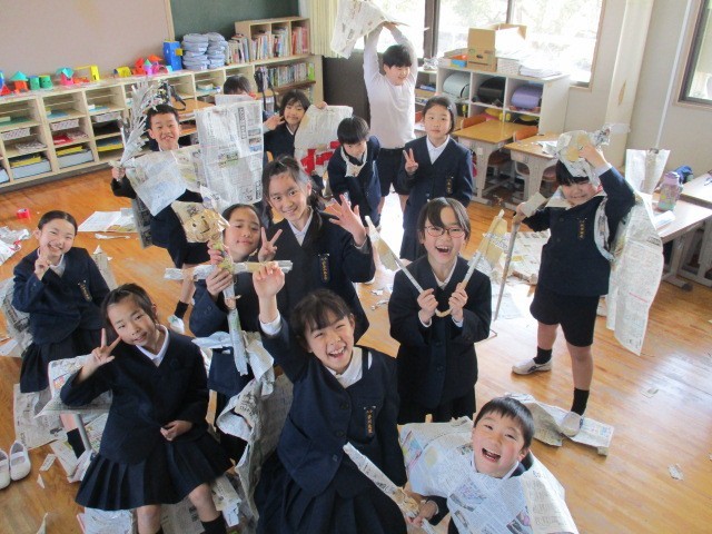 学習を終わらせた後、みんなでお楽しみ会をしました。日差しが気持ちよく、南庭でけいどろをして力いっぱい走り回りました。1学期図工でした「新聞遊び」が楽しかったのか、「新聞で遊びたい。」という意見が多く、教室中新聞を広げて、楽しく製作しました。みんなで、楽しい時間を過ごすことができました。24日は、修了式と離任式があります。2年生の締めくくりにふさわしい態度で臨み、お世話になった先生方にしっかりとお礼の気持ちを伝えたいと思います。