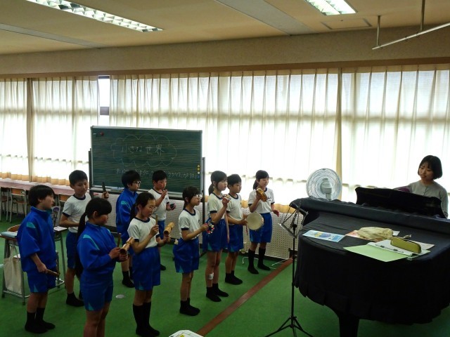 先生のピアノ伴奏に合わせて、子どもたちは合奏の練習を頑張っていました。