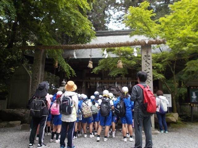 全校児童で近くの大水上神社へ春の遠足に出かけました。