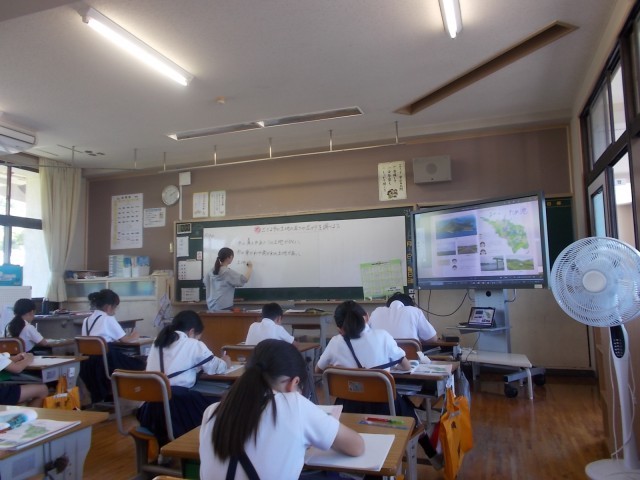 3年生の社会科「三豊市の土地の高さや広がりを調べよう」の授業風景