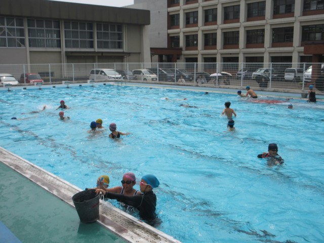 はじめに個人種目。3年生はビート板バタ足とクロールから、4年生はそれに背泳ぎを加えた3つの中から自分で泳ぎ方を選択します。子どもたちはたくさんの声援を受けて、一生懸命泳いでいました。
