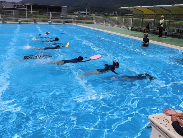 これまでの水泳学習の成果を、学年ごとに発表しました。