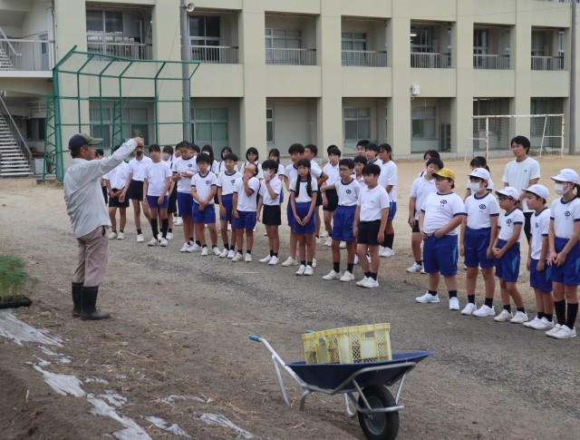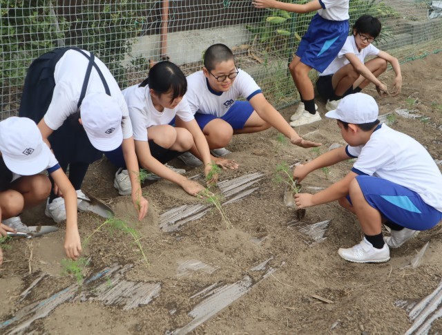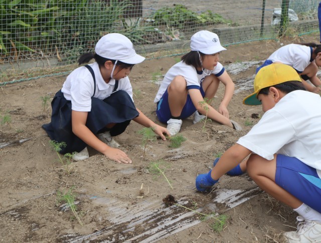 9月4日(木)朝の活動で、全校児童がコスモスの苗を植えました。