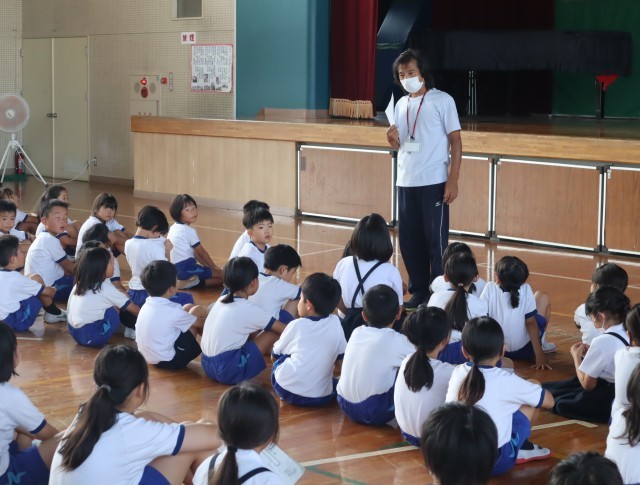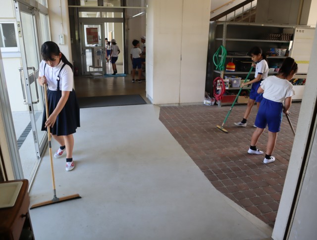 清掃区域毎にペア学年で集まり、担当の先生と役割分担や手順の確認をしました。