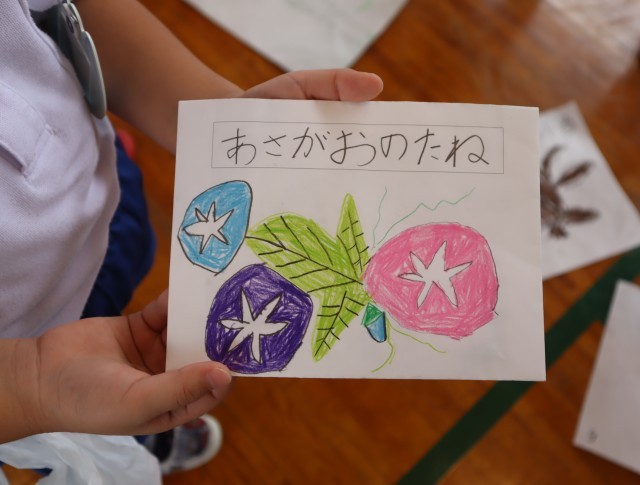 最後は、1年生が大切に育てたあさがおの種をプレゼントしました。