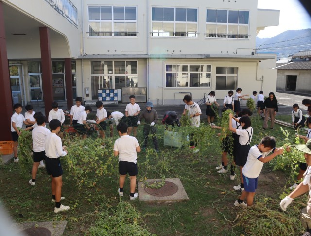 公民館の方に手伝っていただき、6年生が協力して作業しました。