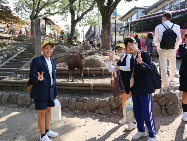 最初の目的地、奈良公園・東大寺の見学をしました。