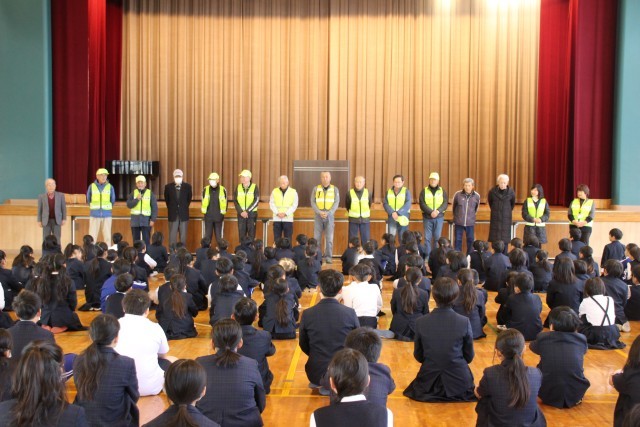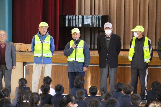 毎朝の登校の見守りや、下校時の車での巡回など、日々の子どもたちの安全を支えてくださっている方々へ、全校児童で感謝の気持ちを伝えました。