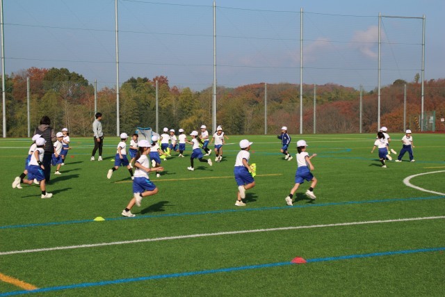 人工芝の美しいサッカー場で、思いっきり体を動かし、楽しい時間を過ごしました。