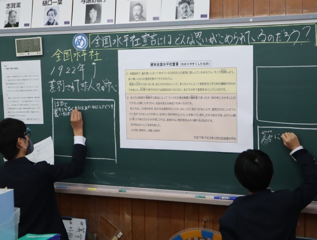 子どもたちは、全国水平社宣言に込められた思いを自分の生き方につなげることができていました。