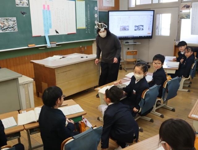 1月28日(水)2校時、1年生が国語「子どもを守る動物たち」の授業を公開しました。