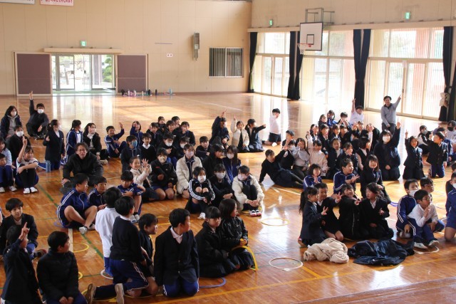 フロアで応援する児童も大いに盛り上がり、体育館が笑顔と拍手に包まれ、学校全体が温かい雰囲気になりました。