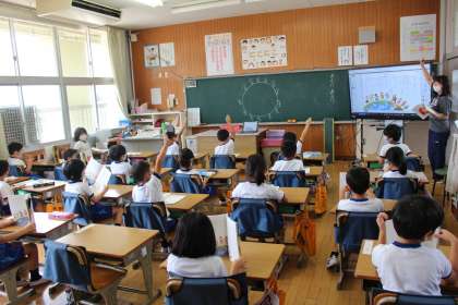 9月2日(木)国語で「あるけあるけ」の詩を読みました。マスク越しですが、元気な声、足踏みをしながら読みました。感じたこと、考えたこともたくさん発表しました。